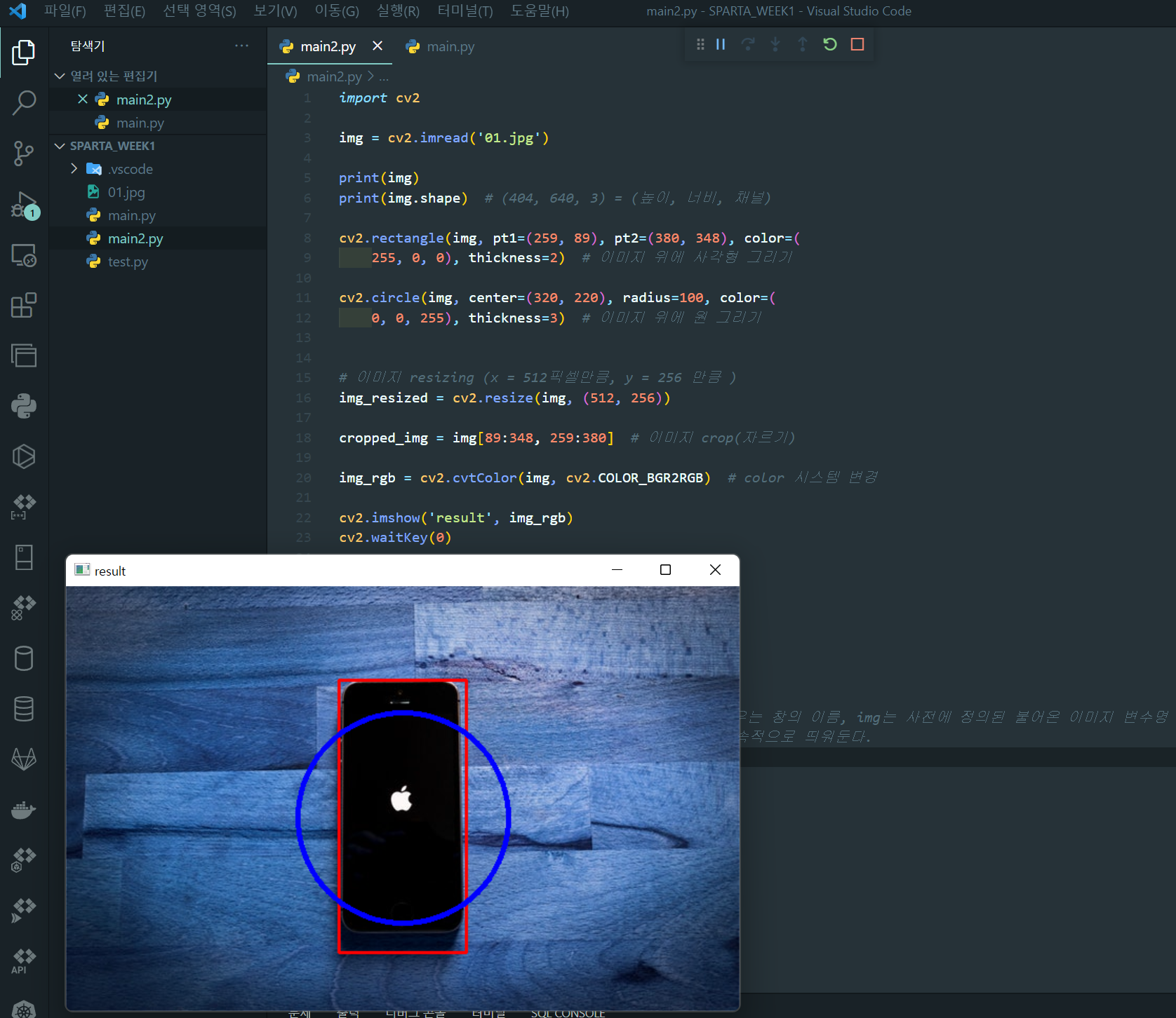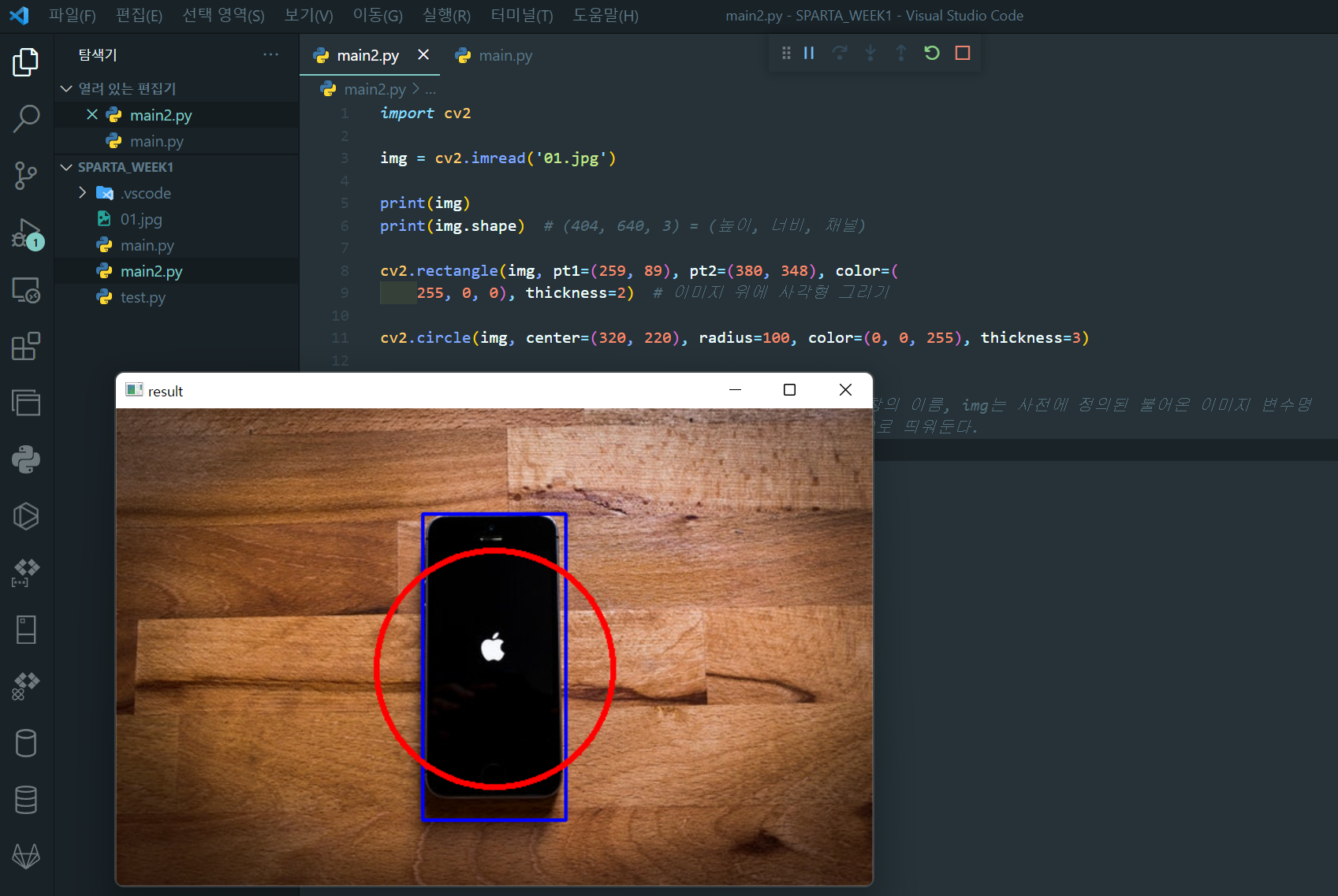 cv2.imshow('result', img) # 한장씩 입력된 img 데이터의 이미지를 화면에 나타내게 되는.