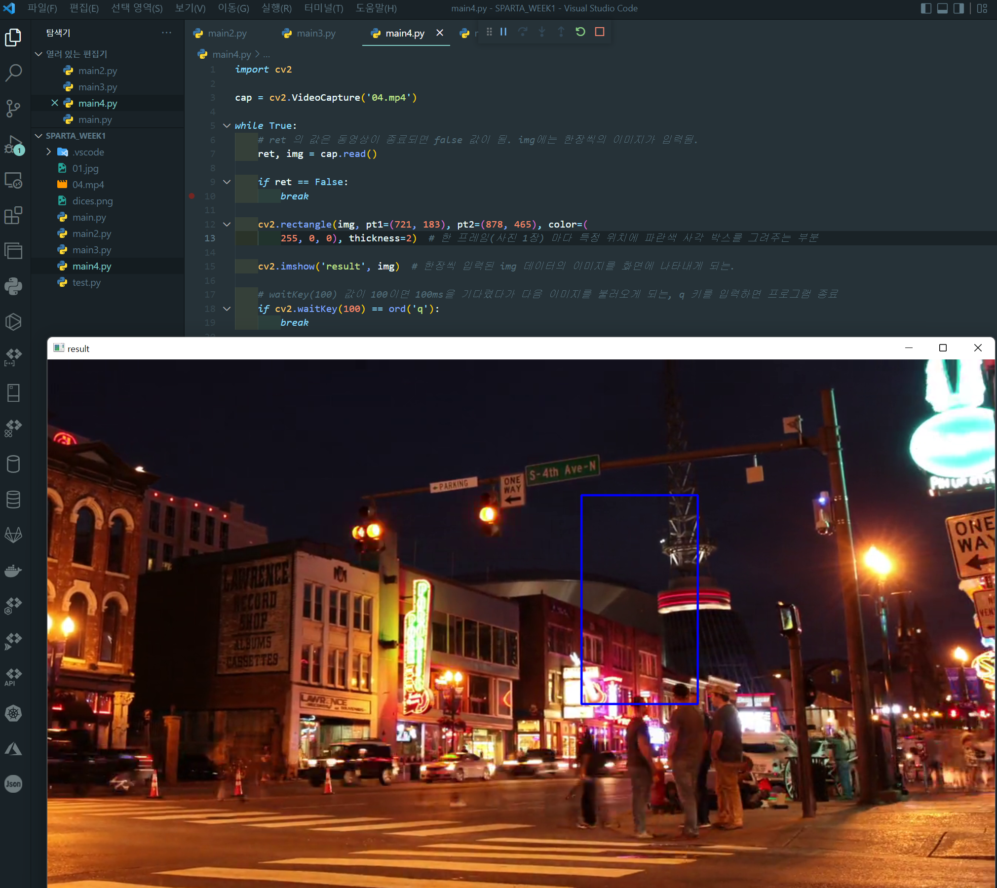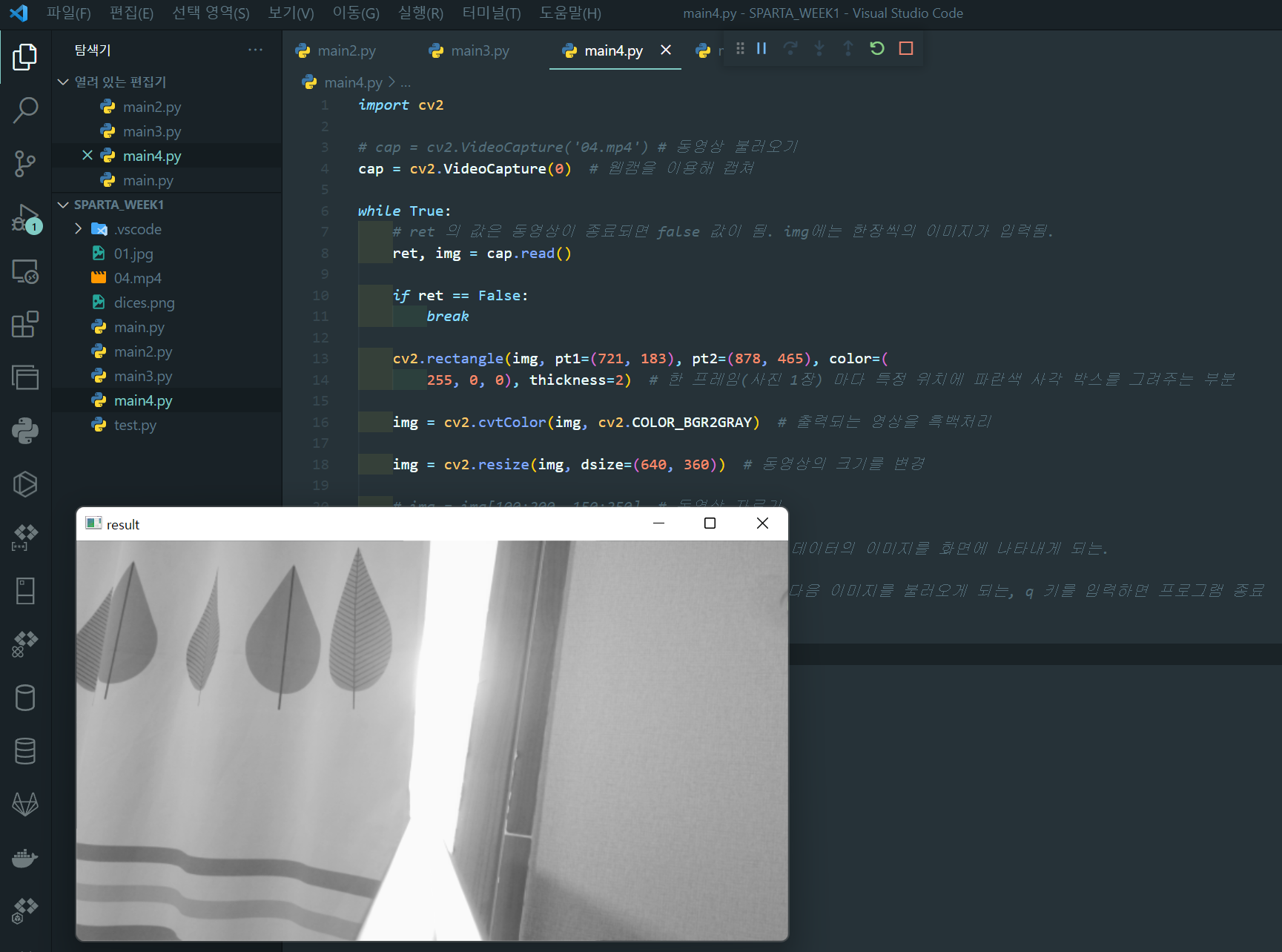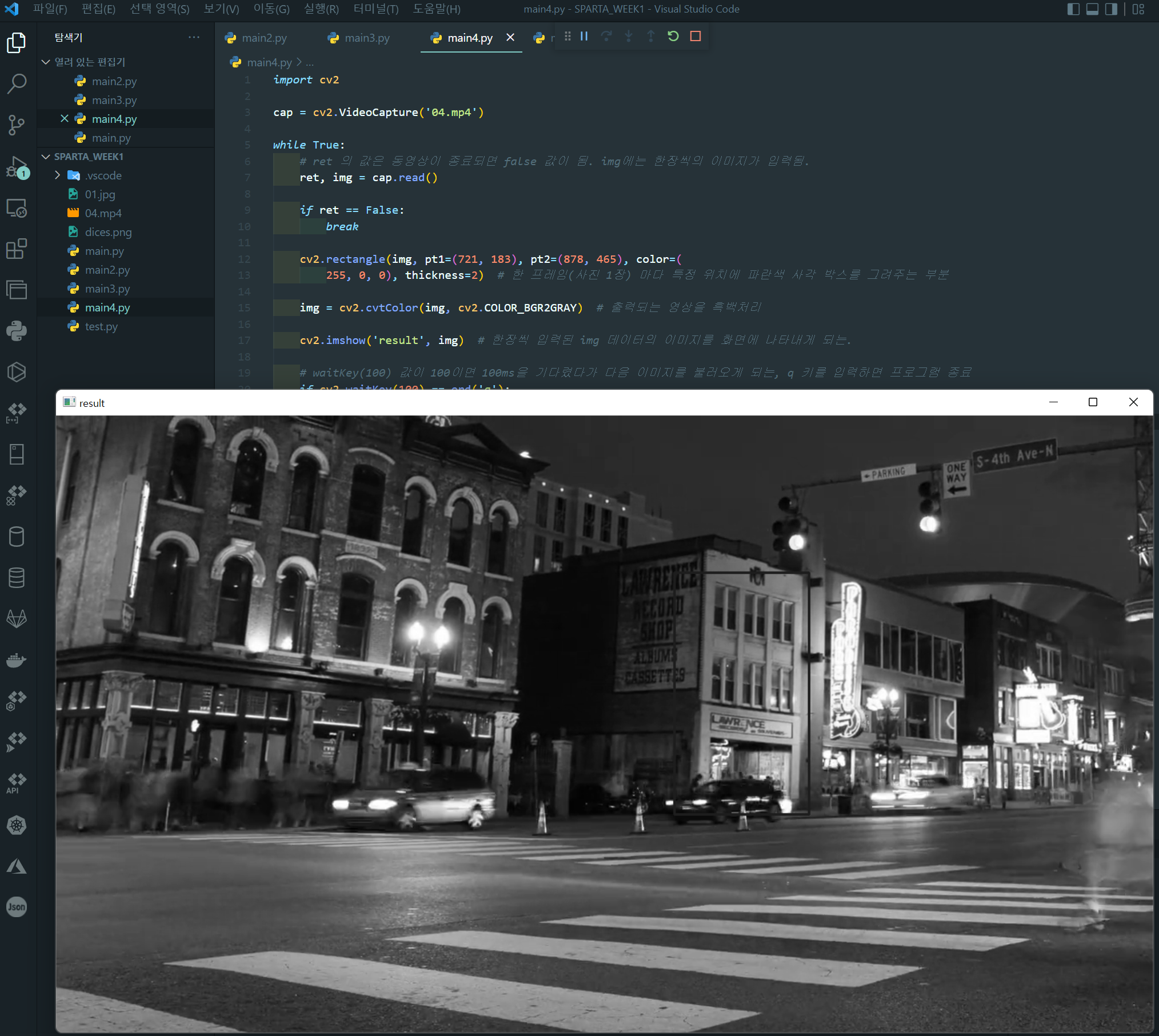 - OpenCV로 동영상을 이미지로 처리하는 방법을 익히고 배웁니다. 영상 가지고 놀기