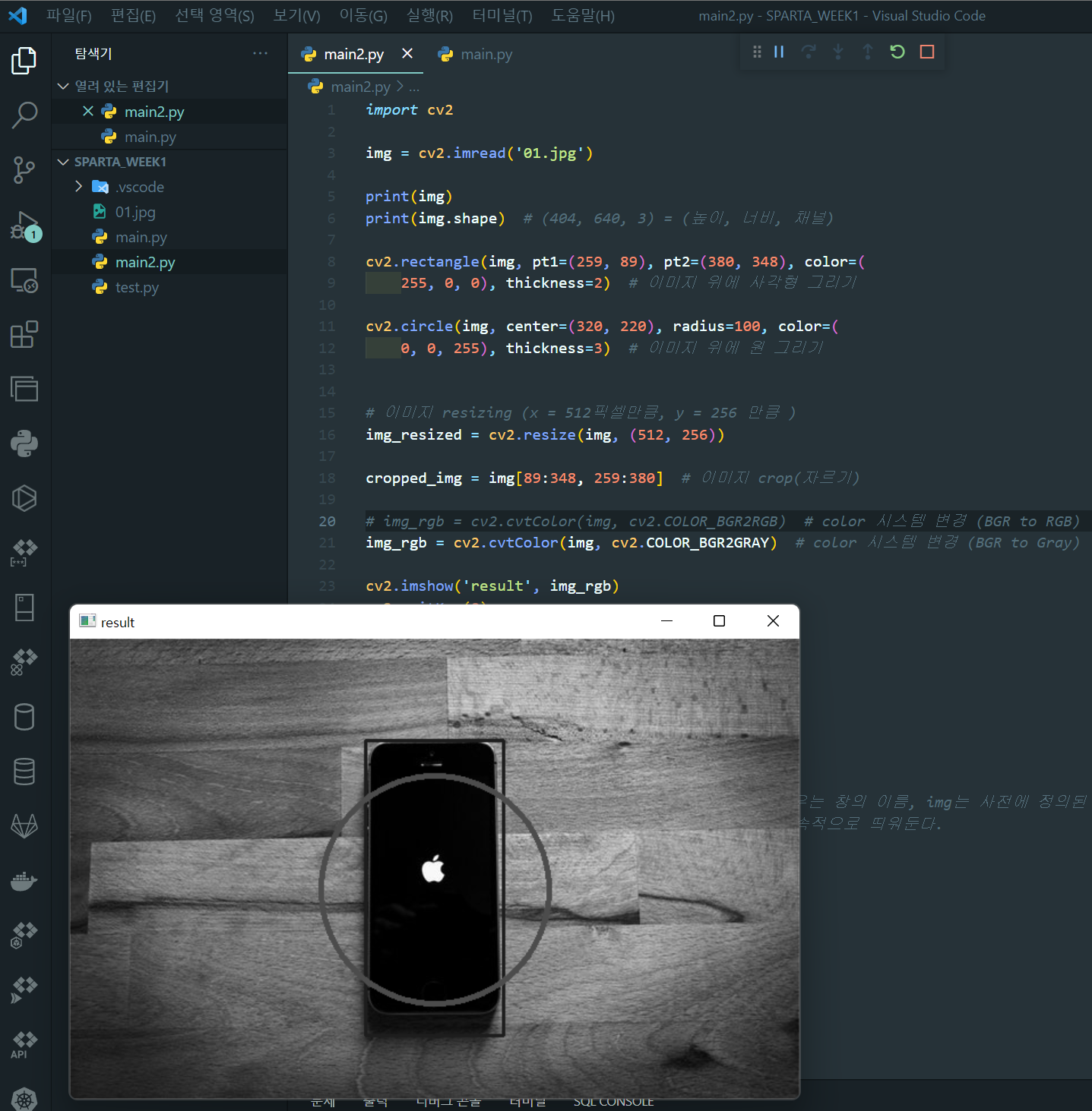 img = cv2.cvtColor(img, cv2.COLOR_BGR2GRAY) # 출력되는 영상을 흑백처리