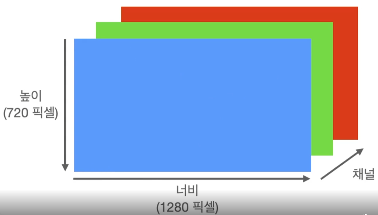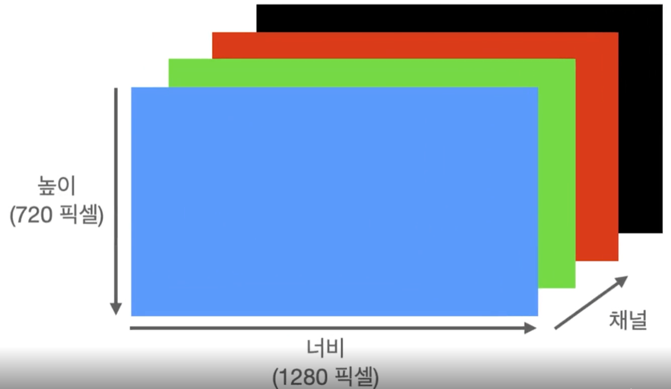 아래는 일반적인 BGR 컬러 시스템의 채널에 대한 설명으로 높이값(픽셀), 너비값(픽셀), 색상값(3채널, 파랑, 녹색,빨강)에 대한 내용.