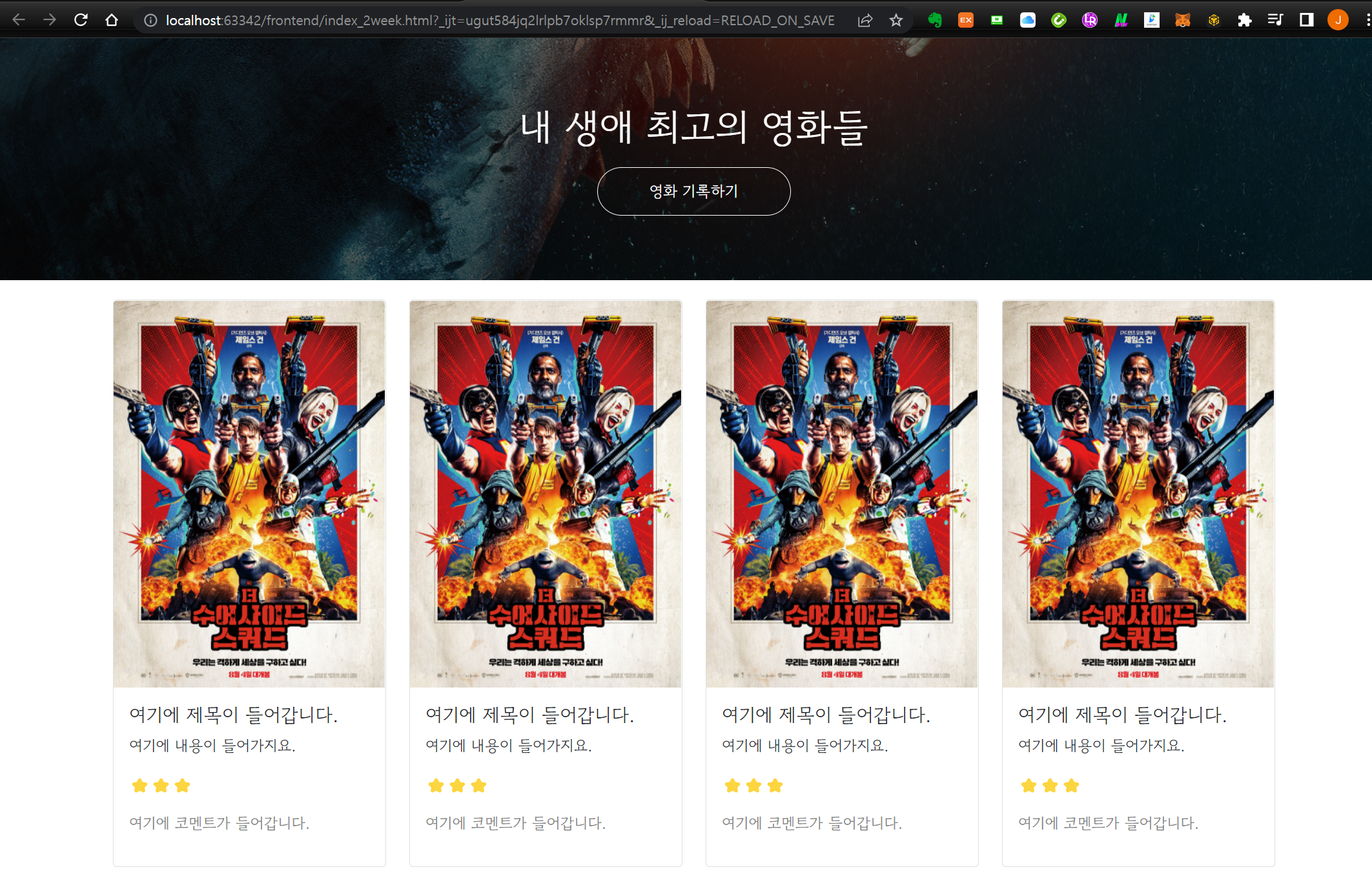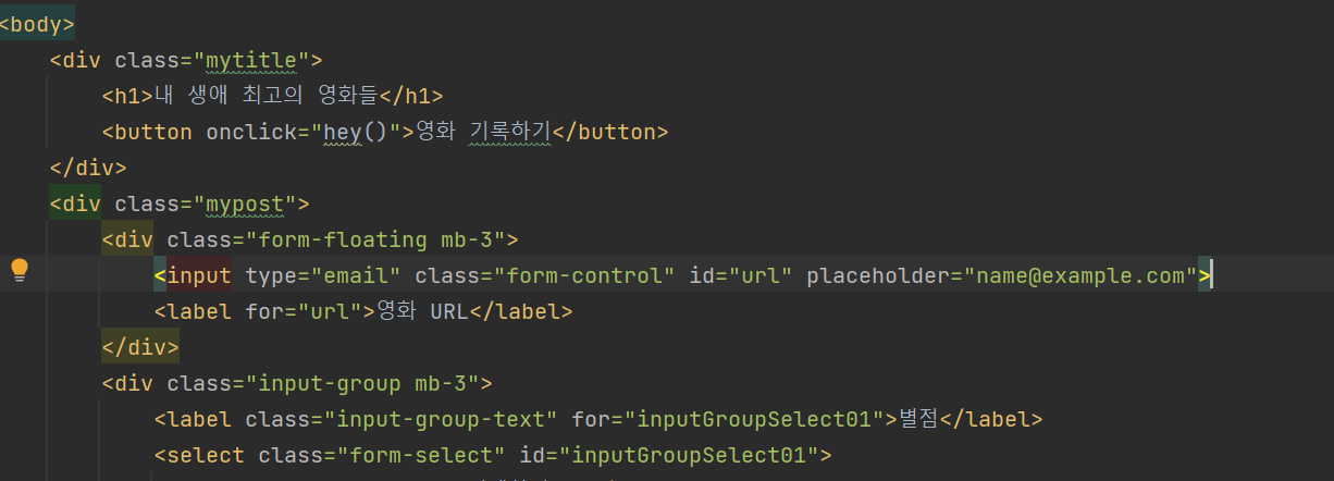 - 포스팅 박스 열기(영화기록하기) 버튼에 function을 달기 (alert 메세지로만 표시)