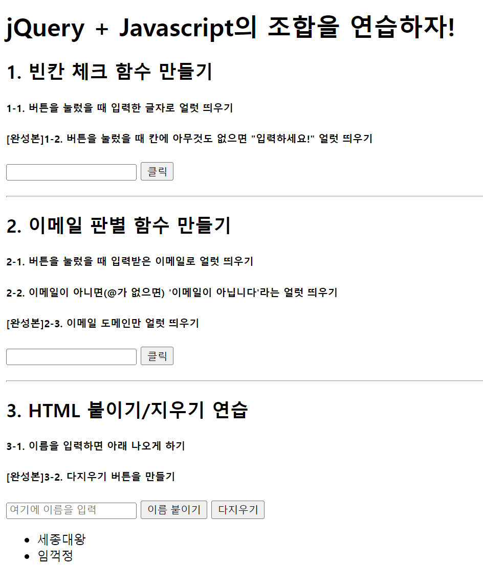 <h1>jQuery + Javascript의 조합을 연습하자!</h1>