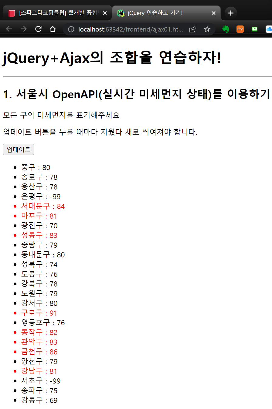 <h1>JQuery+Ajax의 조합을 연습하자!</h1>